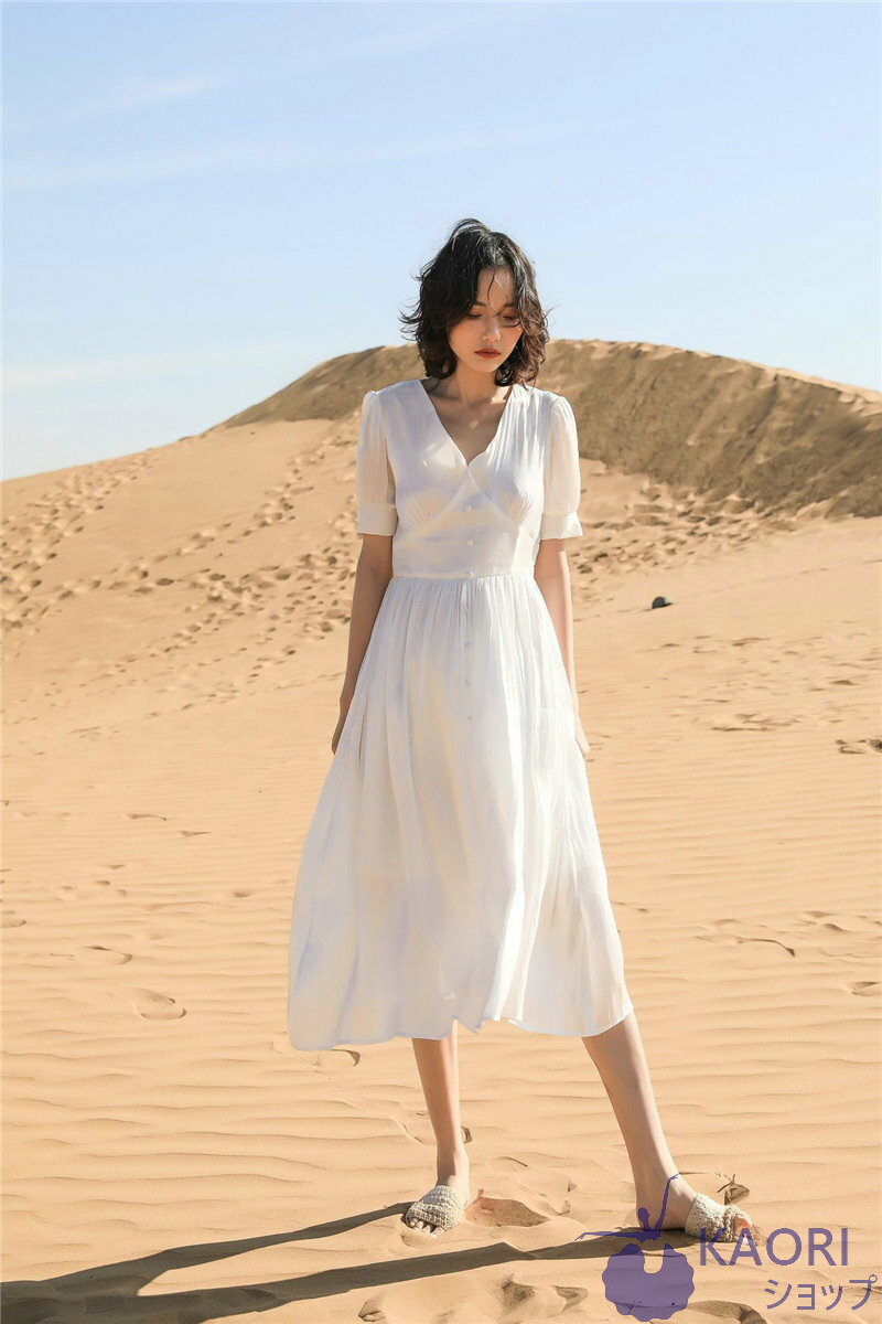 サマードレス デート お出かけ 夏 無地 白 ワンピース レディース サマードレス リゾートワンピ 海 プール かわいい フェミニン ミモレ丈 夏服 20代 30代 40代 50代 ハワイ 沖縄 旅行用 無地 薄手 裏地あり 細見え 女性用 旅行 大人 マキシ丈